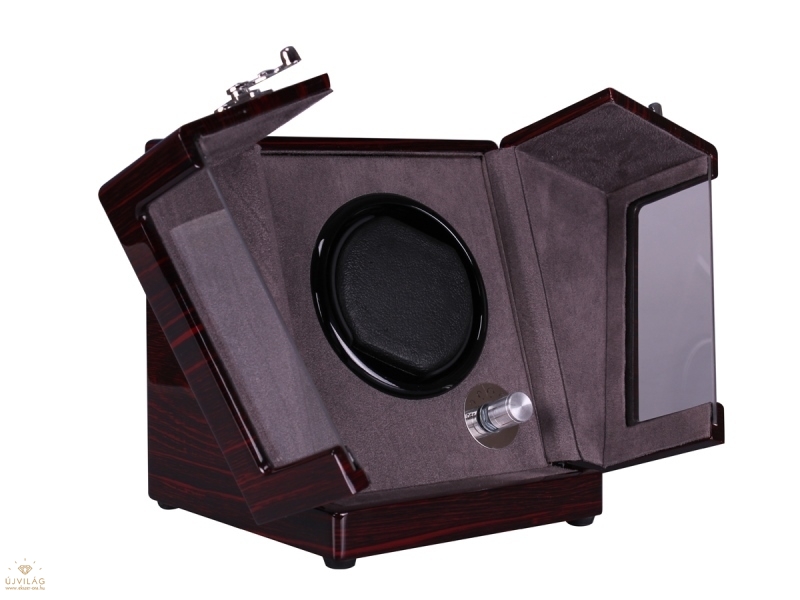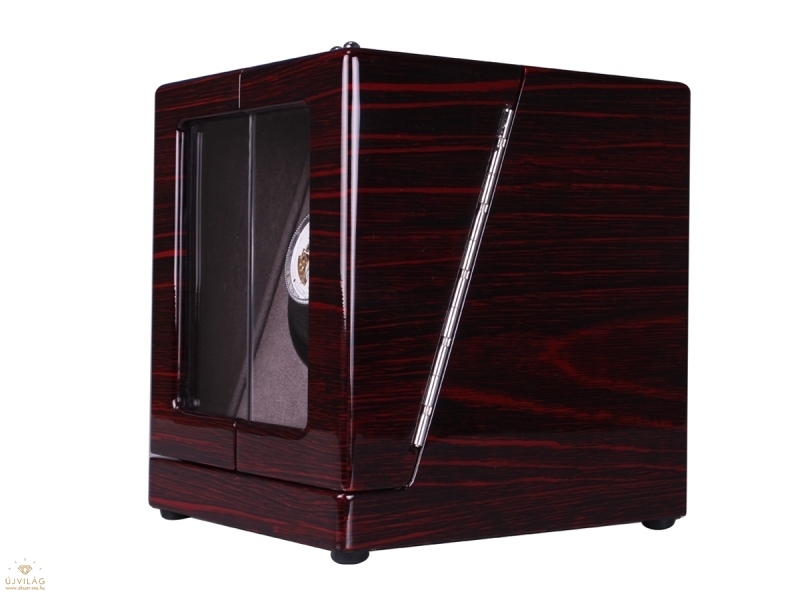 Magas fényű wenge színű óraforgató 1 órához. Kialakításának köszönhetően nagy méretű óráknak is megfelel, 3 forgási irány, 2 választható forgási sebesség. A termék hálózatról és 2db B elemről egyaránt működik, hálózati adapter és magyar nyelvű használati utasítás tartozék. Méretei: Szélesség: 15,5cm Magasság: 19cm Mélység: 17cm Párnák szélessége: 70mm