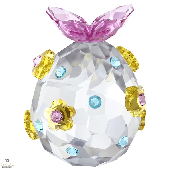 Bemutatjuk a 2026-os Évi kiadású Tojást. A 749 fazettával készült darabot élénk rózsaszín pillangó, élénkkék, lapos hátú kristályok és 7 finom rózsaszín és sárga virág díszíti. Az új kezdetek és a húsvét szimbólumaként csodás ünnepi ajándék, vagy egy új hagyomány részeként a gyűjtemény első darabja is lehet. Méret: 3.5 x 3.5 x 4 cm.