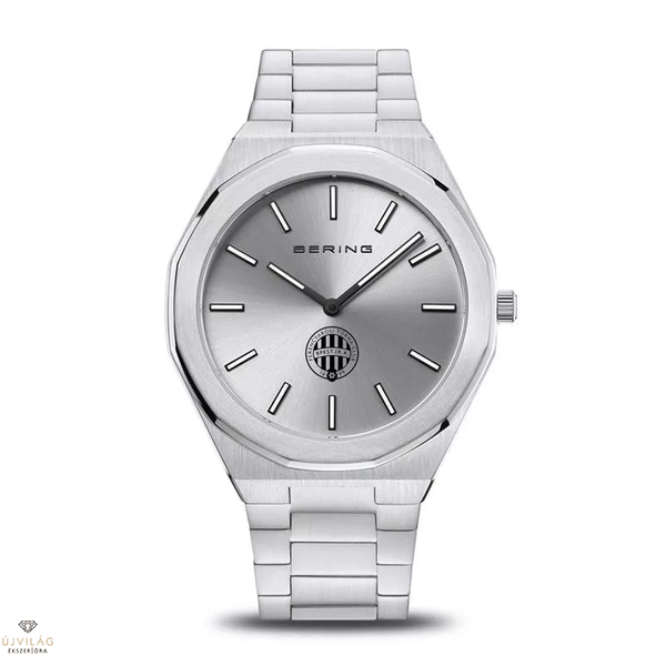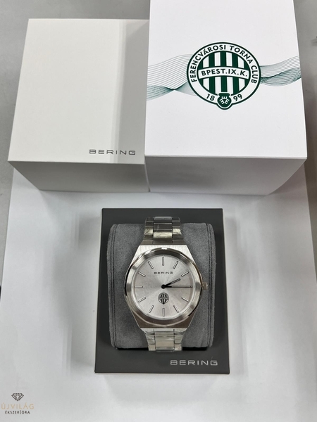A Ferencvárosi Torna Club és a dán BERING most egyesíti a sportszeretetet és a skandináv letisztult dizájnt egy exkluzív, limitált kiadású karórában. Az FTC × BERING óra 316L rozsdamentes acél felépítése rendkívül vékony, mindössze 5 milliméteres. Karcálló zafírüvege és precíz kvarcszerkezete biztosítja a mindennapokban nélkülözhetetlen megbízhatóságot. Az ezüst sunray számlapon kontrasztosan feketével jelenik meg az FTC logó, amely markánsan hordozza a klub identitását, míg az acél hátlapra gravírozva került fel az FTC logó. A minimalista dán dizájn és a labdarúgás szenvedélye találkozik a letisztult formákban: az óra elegáns megjelenése könnyen illeszkedik üzleti, utcai és szurkolói viselethez egyaránt, így egyszerre kínál presztízst és hétköznapi funkcionalitást. Ez az óra nem csupán kiegészítő, hanem emlék és kifejezés: tökéletes ajándék Fradi rajongóknak és gyűjtőknek, akik értékelik a minőséget és a klubhoz való kötődést.