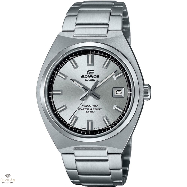 A karcsú, tükörfényes lünetta és a kerek, sugárzó hajszálvékony felületű rozsdamentes acél tok egyedi párosítást alkot a klasszikus megjelenés és a masszív érzet érdekében. Az EFB-109D-1A számlapja fényes, fényes fekete színt kap, amelyet a másodpercmutató egy csipetnyi piros színnel hangsúlyoz. Az EFB-109D-2A kék számlapja és az EFB-109D-7A ezüst számlapja mindegyike napsugaras kialakítású, a középpontból sugárzó finom vonalakkal.