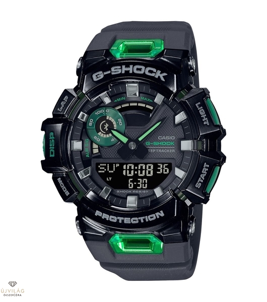 Az új VITAL ENERGY sorozat a G-SQUAD GBA-900 sorozat legújabb tagja. Ezek a modellek gyorsulásmérővel mérhetik a távolságot, miközben Bluetooth®-on keresztül kapcsolódnak egy okostelefon GPS-funkciójához, és miután okostelefonnal végzett méréseket, legközelebb már csak az órával mérheti a távolságot. A tevékenységi előzményeket úgy is ellenőrizheti, hogy összekapcsolja az okostelefonján futó alkalmazást. Az alkalmazás emellett segít leegyszerűsíteni az órabeállítások konfigurálását és az edzéskezelést. A Super Illuminator segítségével még sötétben is könnyen olvashatóak az arcadatok, a pánt puha uretán anyaga pedig javítja a csuklóhoz való illeszkedést, a szellőzőnyílások pedig javítják a légáteresztő képességet. Ez az óra Bluetooth®-on keresztül csatlakozik telefonjához, hogy támogassa az automatikus időbeállítást, a telefonos értesítéseket, a lépéskövetést és más funkciókat a nap folyamán. Az akkumulátor élettartama körülbelül két év a cserék között. Sportos fekete színben, zöld árnyalatokkal.