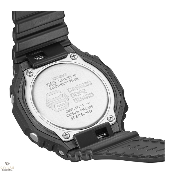 A Casio G-Shock GA-2100VB-1AER Virtual World Limited Edition digitális karóra nagyszerűen egyszerű kialakítású. Az óra vékony és világos fekete műgyanta testtel rendelkezik, szénszál erősítéssel, amely 45,4 mm széles és 11,8 mm vastag. Az óra súlya 51 gramm. A GA-2100VB-1AER óratest Carbon Core Guard kialakítást alkalmaz, amely kiváló ütésállóságot biztosít a szénszálak tulajdonságainak (ütésállóság, merevség és szétesésállóság) felhasználásával, amelyeket a repülőgépváz alkatrészekben is használnak. A csuklópánt poliuretánból készült, ami nagyon strapabíró és kényelmes a csuklón. Ez egy korlátozott kiadású modell, azaz csak korlátozott ideig érhető el.