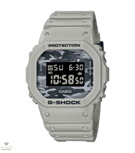 Az új DW-5600CA-8ER finom szürke terepszínű arccal, valamint halványszürke tokkal és szíjjal rendelkezik. A mai G-SHOCK márkát meghatározó megbízható funkciókkal felszerelt DW-5600CA EL háttérvilágítást, többfunkciós riasztót és 200M vízállóságot is tartalmaz. Maradjon eredeti, és adja hozzá ezt az új Camo Utility órát a gyűjteményéhez.