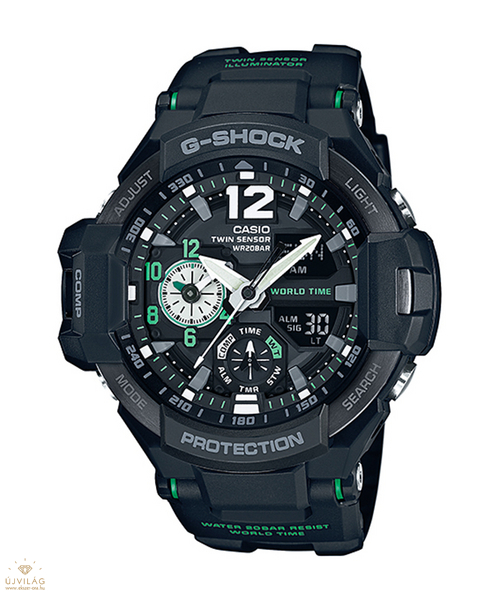 Funkciók: Stopper, Világidő, Ütésálló tokozás, Ébresztés, Világítás, Iránytű, Hőmérséklet mérés, 24 órás kijelző, Visszaszámláló funkció, Öröknaptár