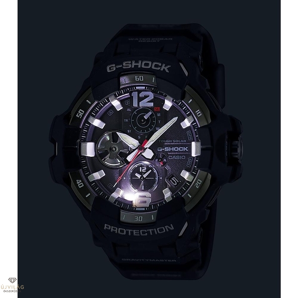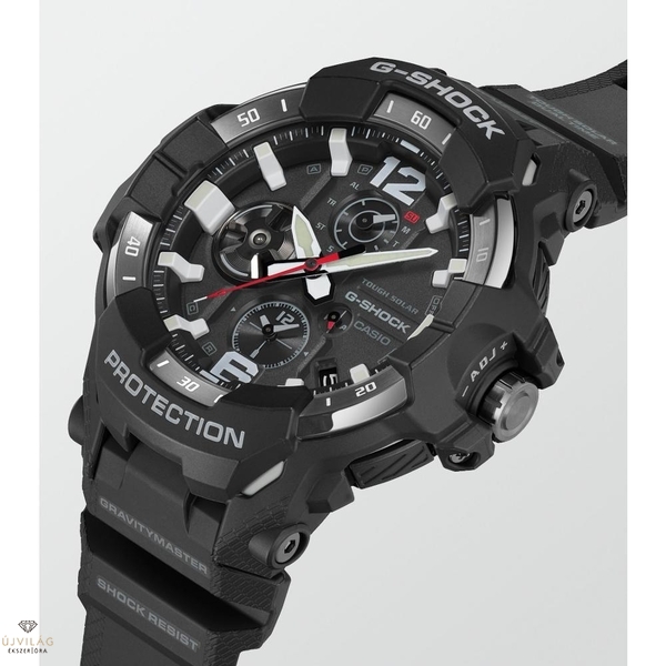 A határ a csillagos ég! Bemutatjuk a GRAVITYMASTER GR-B300-at, a G-SHOCK MASTER of G termékcsalád repülés ihlette professzionális felszerelését, amelyet úgy terveztek, hogy a legzordabb körülmények között is működjön. A GR-B300 Carbon Core Guard szerkezettel rendelkezik, amely a repülőgépek törzsében használt karbon anyag ütésállóságát, merevségét és korrózióállóságát biztosítja. A szénszál-erősítésű műgyanta tok és a következő generációs repülőgépek által inspirált varratmentes lünetta kialakítása merész és erőteljes formában egyesül.