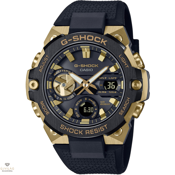Gyönyörködjön a fém és gyanta alkatrészek eklektikus G-STEEL kombinációjában a fekete és arany egyre népszerűbb színvilágában. A masszív konstrukció és a stílusos dizájn találkozik a fekete alapon ionozott, aranyozott fém kerettel. Ez a kifinomult divatnyilatkozat luxus hangulattal és hűvös megjelenéssel oda visz, ahova szeretne. Tok mérete (H × Szé × Ma) 46,6 × 49,6 × 12,9 mm