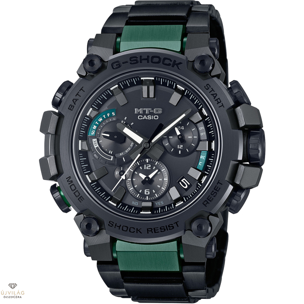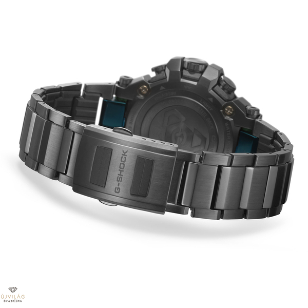 Az MT-G innováció még a sávra is kiterjed. A vadonatúj egyérintéses csereszerkezet szükségtelenné teszi a speciális szerszámokat. Egyszerűen nyomja meg a fülek mindkét oldalán található gombokat a szalag gyors és egyszerű cseréjéhez. A nagy átlátszóságú zafírkristály a Yamagata Casio nano-feldolgozási technológiájának finom formázásával és gőzleválasztásával párosítva a kifinomultság és a minőség utolsó simáját adja. Az MTGB3000BD üreges rozsdamentes acél szegmensekből álló, réteges kompozit szalaggal rendelkezik, amely finom gyanta részeket von be a könnyebb súly érdekében. Az ionozott fém alkatrészek friss színt kölcsönöznek az általános elegáns fekete dizájnnak. Ez az innovatív, kemény új stílus teljes körű funkcionalitást is kínál.