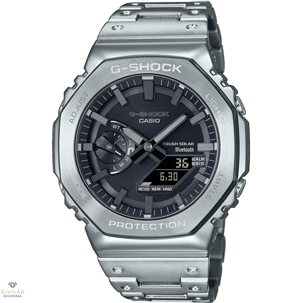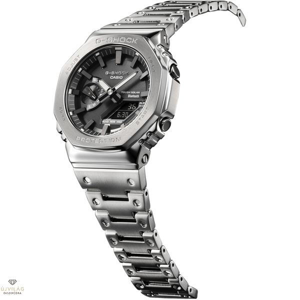 Bemutatjuk az első teljes fémből készült kiegészítőt a folyamatosan fejlődő, 2100-as sorozathoz, amelyek az első G-SHOCK, a DW-5000C örökségét öröklik. Luxus, teljesen fém konstrukció a csavaros hátlappal, előlappal és rozsdamentes acélból készült szalaggal, amely áramvonalas, minimalista dizájnt hoz létre, miközben védi a modult az ütésektől, ha leejtik. Az eredeti, 1983-as nyolcszögletű kerettel és gödröcskés szalagkialakítással egészen régre nyúlunk vissza, mindez fémből készült. A nagy sűrűségű rögzítés karcsúsítja az analóg-digitális kombinált modult, miközben továbbra is biztosítja az Ön által kedvelt fejlett funkciókat kompakt profilban és kényelmes illeszkedésben. Bluetooth®-on keresztül párosítható okostelefonnal. Egyszerűen érintse meg a dedikált alkalmazást a precíziós időméréshez, amely a pályán tart. A Tough Solarral, a nagy fényerejű LED-lámpával és egy sor más kényelmes funkcióval ez egy stílusos és praktikus használhatóságot biztosító óra.