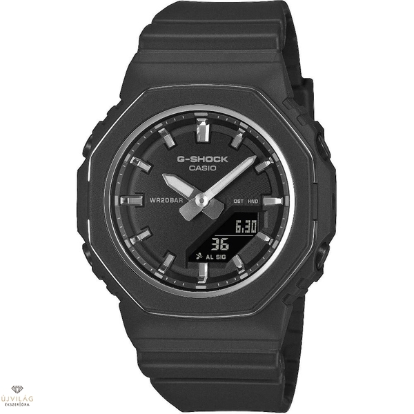 A G-SHOCK népszerű digitális-analóg órasorozatának kiemelkedő darabja, a GMA-P2110 vékony fémgyűrűvel rendelkezik, amely a keret belső és külső széleiről egyaránt visszatükrözi a fényt.