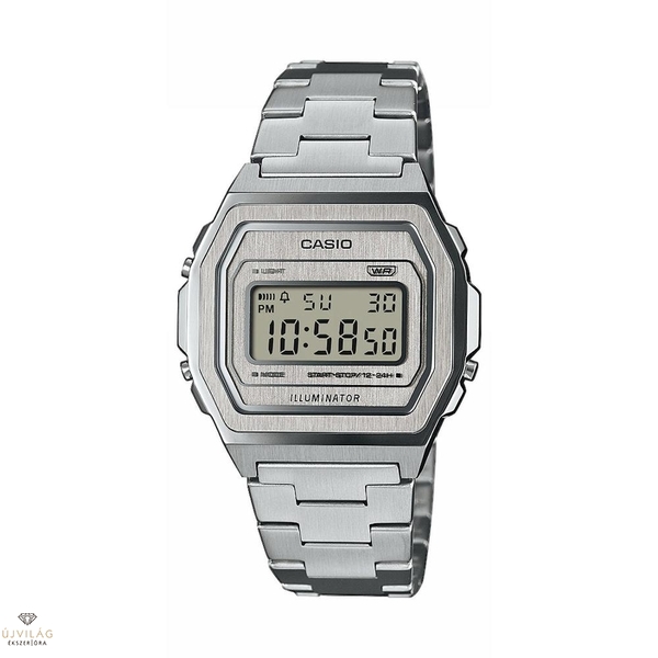 Funkciók: Dátum, Nap neve kijelzés, Stopper, Ébresztés, Világítás, 24 órás kijelző, Öröknaptár