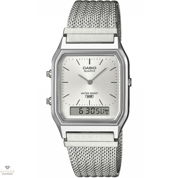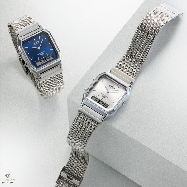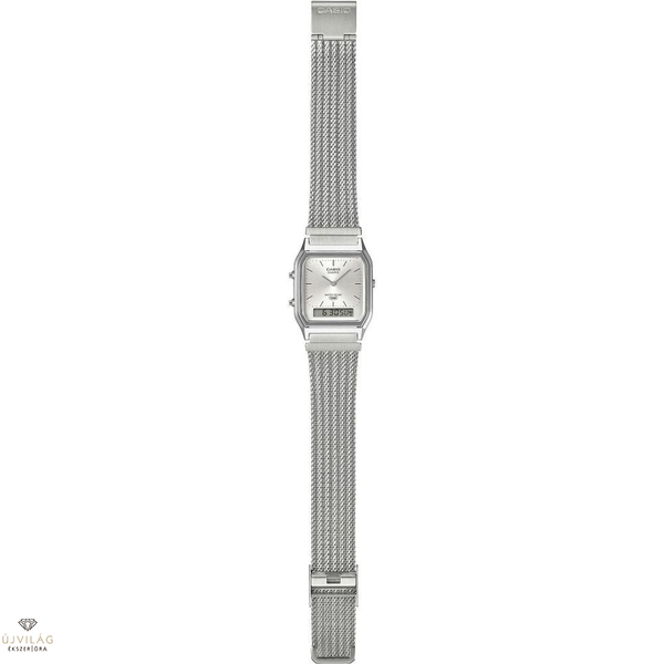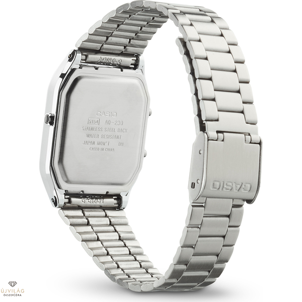 A kedvenc klasszikus modell frissített változata – az analóg-digitális kombinációjú AQ-230 szögletes számlappal és finom szövésű hálós karkötővel stílusosan elegáns megjelenést kölcsönöz.