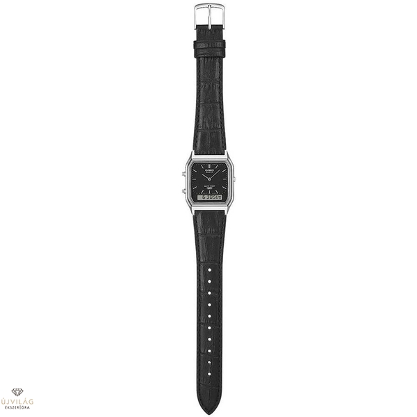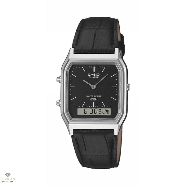 A népszerű AQ-230 modell alapján készült óra elegáns, kifinomult megjelenést, valamint praktikus funkcionalitást kínál, vízállósággal a mindennapi használathoz, stopperrel, riasztóval és egyéb funkciókkal. A klasszikus dombornyomott kialakítású szíj időtálló megjelenést kölcsönöz az órának.