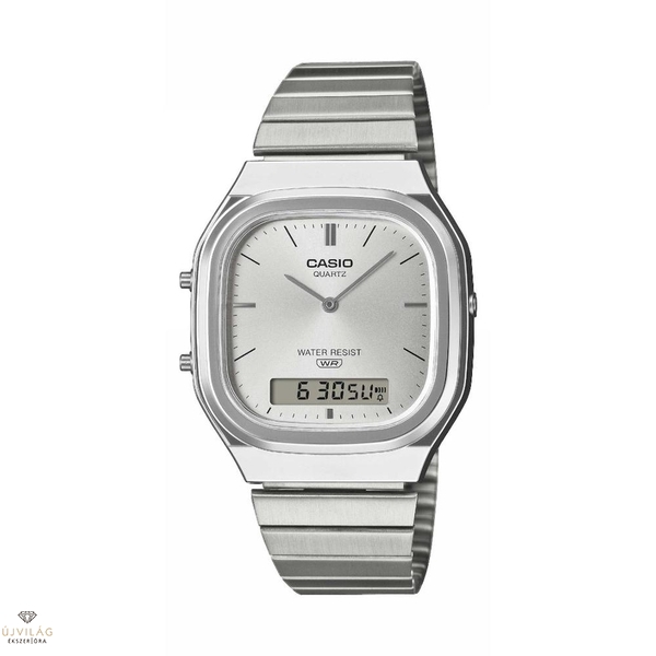 A kettős kijelzővel rendelkező analóg-digitális AQ-240 retro-modern stílust képvisel. Enyhén téglalap alakú számlapja, finoman lekerekített tokja és lágy fém ívei kifinomultságot sugároznak.