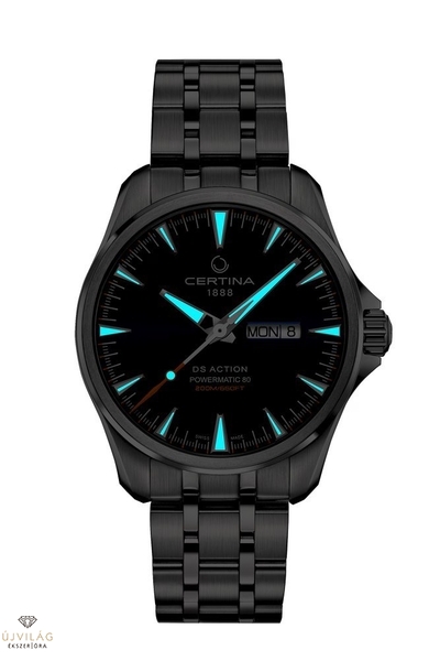 A robusztus és elegáns Certina DS Action Day-Date Powermatic 80 egy automata óra, amelyet azoknak a férfiaknak terveztek, akik értékelik a pontosságot és a megbízhatóságot. Powermatic 80 mozgása figyelemre méltó 80 órás energia-tartalékot biztosít, garantálva a mindennapi praktikumot. A mindennapi életre és a kalandokra egyaránt alkalmas óra nap- és dátumkijelzővel rendelkezik, garantálva az optimális olvashatóságot. Időtálló kialakítása minden alkalomra megfelel, vízállósága pedig az aktív életmód követelményeinek is megfelel. Merész karakterű óra, tökéletes azok számára, akik kompromisszumok nélküli teljesítményt és eleganciát keresnek.