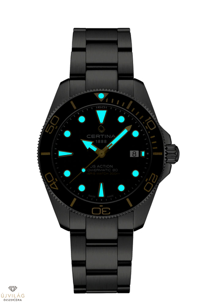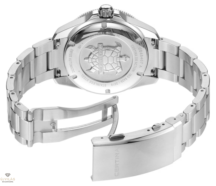 300 méteres vízállóságával és az ISO 6425:2018 tanúsítvánnyal ez a modell megfelel a professzionális búvárórákra vonatkozó legszigorúbb követelményeknek. A DS Action Diver 40,5 mm egyben mérföldkőnek is számít, hiszen ez az első Certina óra, amely a DS rendszer legújabb fejlesztését, a „New DS Concept Extreme Shock Resistance” technológiát alkalmazza.