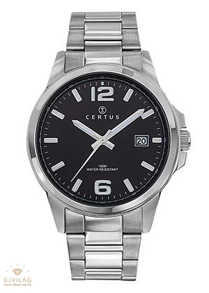 A CERTUS francia óramárka elegáns és klasszikus stílusjegyekkel. Sportos fémszíjas férfi karóra japán Miyota 2315 óraszerkezettel: dátum-kijelzéssel a 3-as index mellett. Az óratok nemesacél, átmérője 40 mm. Az ezüst színű nemesacél fémszíj szélessége 20 mm, biztonsági pillangó-zárral kapcsolódik. Az üvege keményített ásványi üveg, mely ellenáll az enyhe súrlódásoknak, azok nem hagynak rajta nyomot. Az óra szigetelése 10 ATM, mely védi a szennyeződésektől, víztől, a Használati útmutató-ban leírtak betartásával akár úszásra, vízi sportolásra is alkalmas.