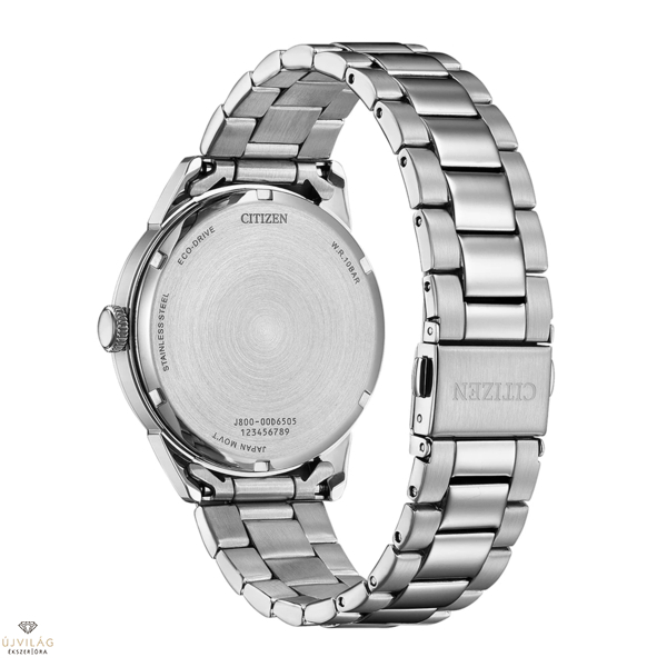 Ez az elegáns AW0151-85XC karóra ezüstszínű rozsdamentes acél tokjával, csavaros hátlapjával és zöld számlapjával, amelyen világos vonalindexek találhatók, igazán lenyűgöző.