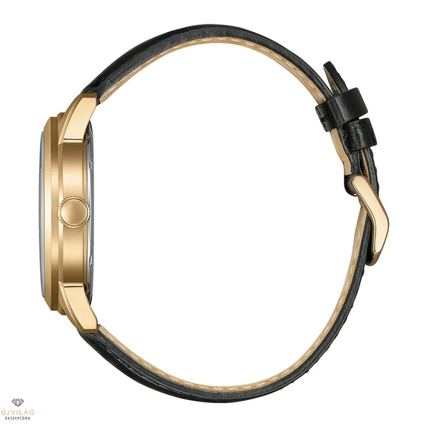 Bőr szíjjal és csatral ellátott óra kiváló viselési kényelmet és biztonságos illeszkedést biztosít. A karcálló kristályüveg hatékony védelmet nyújt, míg a 10 bar-ig terjedő vízállóság garantálja a mindennapi használhatóságot nedves körülmények között is.