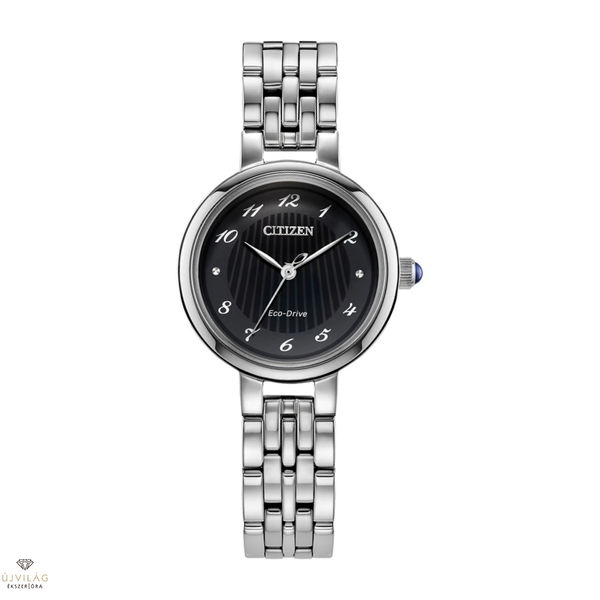 Ez az elegáns Citizen L karóra EM0990-81E ötvözi a precíz technológiát és az időtálló dizájnt. Az ezüstszínű rozsdamentes acél tok (Ø 27,7 mm, magasság 7,73 mm) és a fekete számlap arab számokkal tiszta, elegáns megjelenést kölcsönöznek az órának.
