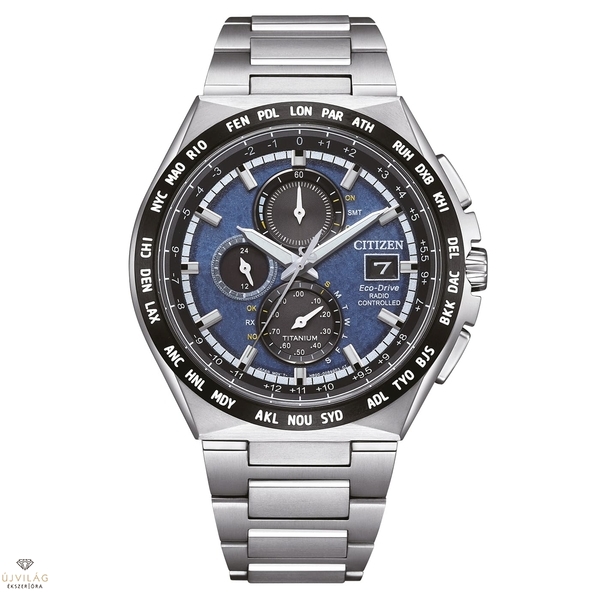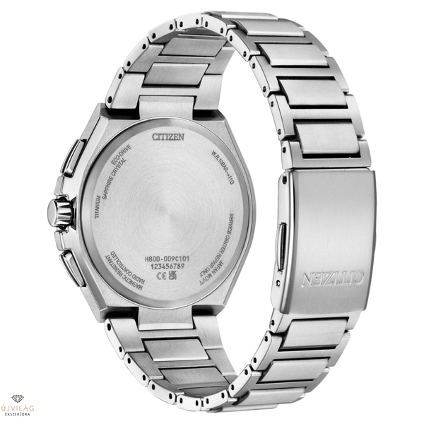 Rádióvezérlésű óra Super Titanium™-ból készült Eco-Drive-val. Könnyű, rádión pontos és a világidő mindig fókuszban van. Így lehetne jellemezni az új AT8238-84L kronográf modellt a Super Titanium sorozatból. Különösen a világjárók fognak örülni a 26 elérhető időzónának: Tokió, New York, Párizs és sok más város gyorsan megkereshető a világidő funkciónak köszönhetően. A kronográfok különösen alkalmasak utazáshoz és rendkívül ellenállóak a könnyű és karcálló Super Titanium™ anyagnak - egy saját fejlesztésnek - köszönhetően. Továbbá: napenergiával működő Eco-Drive óraszerkezet rádióvezérlésű óratechnológiával, amely fogadja az atomórától érkező jelet, és pontos másodpercre alakítja át (rádióvezérlésű). Az új Super Titanium™ kronográf napenergiával működő, saját gyártású óraszerkezettel van felszerelve (kaliber H800, Eco-Drive, kvarc). A világidő és a rádióvezérlésű óra funkció mellett az új modellek öröknaptárral, kronográf funkcióval (stopper), energiatartalék kijelzéssel és energiatakarékos funkcióval rendelkeznek. A kronográf továbbá antimágneses, karcálló zafírüveggel ellátott, 10 bar-ig (100 méter) vízálló és 45 mm átmérőjű.