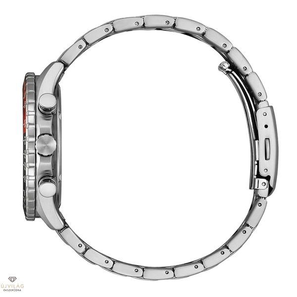A fekete számlap vonalindexekkel és lumineszcens mutatókkal garantálja a kiváló láthatóságot. A modellt szilárd rozsdamentes acél szíj egészíti ki, biztonsági összecsukható csatral és dupla nyomógombos zárral a biztonságos kényelem érdekében.