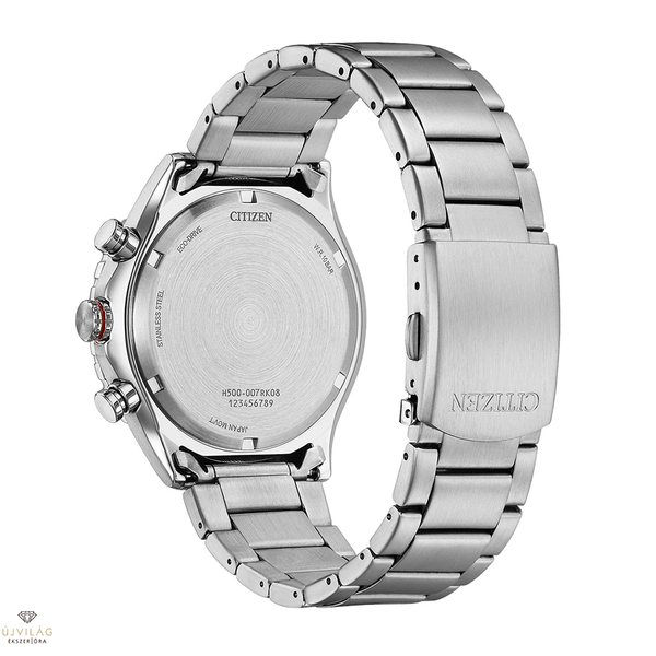 Az analóg AT2566-88E kronográf Eco-Drive technológiával nem igényel elemcserét, és 150 napos energia-tartalékkal rendelkezik. Az olyan funkciók, mint a 24 órás kijelző, a stopperóra (max. 60 perc), a dátum és az akkumulátor lemerülési jelző biztosítják a magas funkcionalitást.