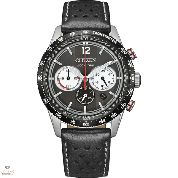 A Citizen Racing Chronograph CA4717-06E ötvözi a csúcstechnológiás pontosságot és az elegáns dizájnt. A 39,9 mm-es rozsdamentes acél tok (magasság 12,33 mm) egy erős kristályüveget véd, és 10 barig vízálló. Az Eco-Drive technológiával felszerelt óra nem igényel elemcserét, havi ±15 másodperces pontossággal és akár 270 napos energia-tartalékkal rendelkezik.