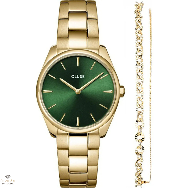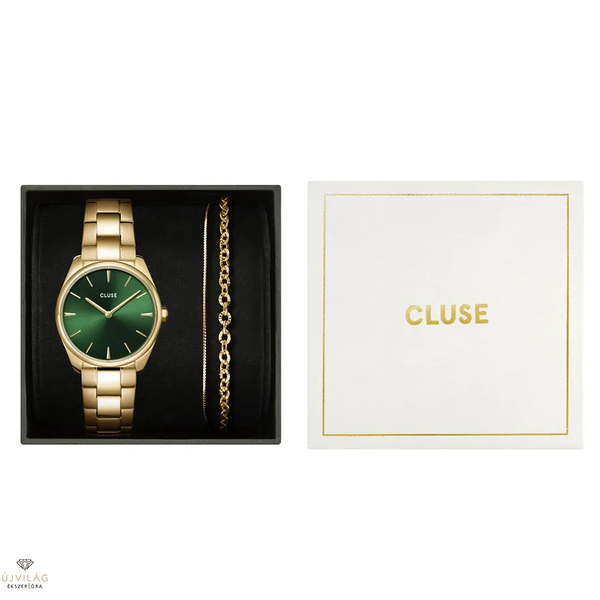 Cluse Féroce Petite Steel Watch and Double Chain Bracelet, Gold Colour női óra szett - CG11201