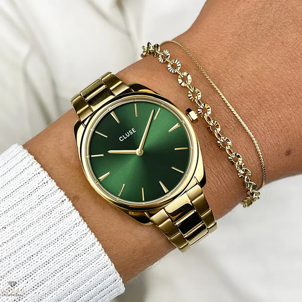 Ez a gyönyörű CLUSE ajándékdoboz nőknek a Féroce Petite női karórát arany színben és zöld színben kombinálja egy finom aranyszínű karkötővel. A Féroce Petite karóra aranyszínű, 31,5 mm-es tokkal, zöld számlapjával és aranyszínű, 3 láncszemes szíjjal rendelkezik. A kifinomult megjelenés érdekében viselje együtt a kiegészítő aranyszínű CLUSE dupla láncos karkötővel. Modern geometrikus mintás díszdobozban kerül bemutatásra.
