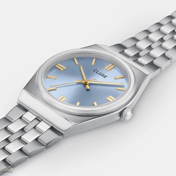 Élvezze a 70-es évek szellemét a vintage ihletésű Retro 70-es évek női órával. Merész, kerek, világoskék számlap aranymutatóval, karcsú, 33 mm-es, ezüstszínű tokkal és rozsdamentes acélból készült, 5 láncszemes, 20 mm-es szíjjal, amely klasszikus hangulatot kölcsönöz minden megjelenésnek. A szíj méretét könnyedén magad állíthatod be.