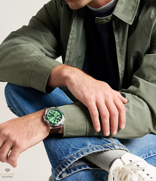 A Garrett egy klasszikus sportos stílusú, túlméretezett óra. A gazdag zöld napraforgó mintázatú számlap mélységet kölcsönöz, a multifunkciós kis számlapok pedig praktikus részleteket adnak hozzá. Barna bőr szíjjal párosítva sokoldalú és elegáns megjelenést kölcsönöz. Gondosan kivitelezett, minőségi anyagokból készült óra, amely mind a dizájnt, mind a mindennapi viselhetőséget hangsúlyozza.