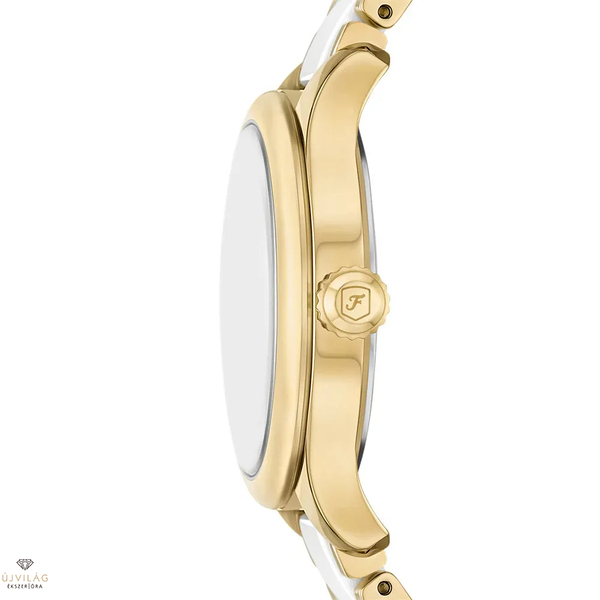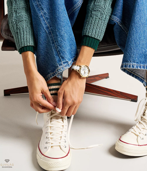Ez a 38 mm-es kerek óra ötvözi az arany színű és fehér kerámia kivitelezést az időtálló dizájnnal. Arany színű és fehér kerámia karkötője illeszkedik a karcsú tokhoz, míg a szatén és napfényes fehér számlap kifinomult megjelenést kölcsönöz neki. A tartósságra tervezett óra stílusos és praktikus egyaránt, így bármely kollekció kiemelkedő darabja lehet. Tiszta és kifinomult dizájnja kiemeli a tartós minőséget és a részletek iránti figyelmet.