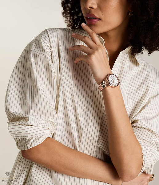 A Gilmore óra ötvözi a vintage ihletésű dizájnt a modern sokoldalúsággal. Vékony, rózsaarany színű tokja fényvisszaverő, ezüstszínű, napsugaras számlapot tartalmaz, amelyhez elegáns H-csuklós karperec párosul. A hárommutatós dátumos óramű időtlen funkcionalitást kölcsönöz, hogy Ön mindig naprakész maradjon. Viselje ezt a klasszikus társat a reggeli találkozóktól az esti szórakozásig.