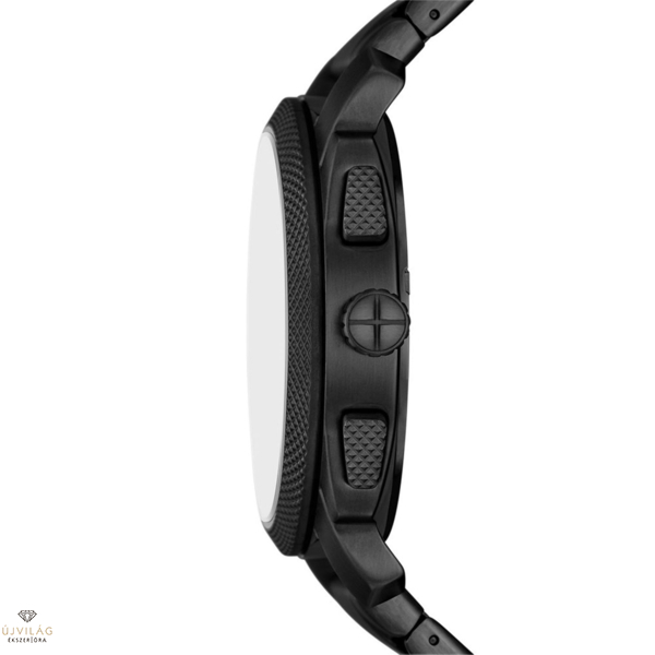 A klasszikus amerikai gépek által ihletett Machine Chronograph a merész, bordázott topringgel hívja fel magára a figyelmet. Összetéveszthetetlenül férfias, merész, 44 mm-es tokjában egy szálcsiszolt fekete, textúrázott részletekkel ellátott számlap található, amelyet borostyánszínű ásványi kristálylap véd. A precíziós kvarc kronográf szerkezet által működtetett, robusztus időmérő fekete rozsdamentes acél szíjjal készült. Igazi állásfoglalás az ipari ihletésű dizájnban.