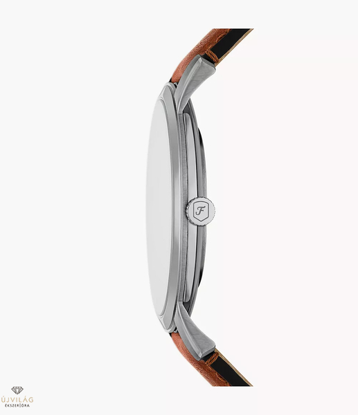 Ez a modern időmérő a minimalista stílus új szintjét éri el. A gazdag bőrszíj tökéletes kontrasztot alkot a napbarnított zöld számlapjával, így kifinomult és sokoldalú megjelenést biztosít. A 44 mm-es rozsdamentes acél tokkal és extra vékony profillal ez a visszafogott óra egyensúlyt teremt a stílus és a funkció között. A Fossil bőrtermékek a Leather Working Groupon keresztül támogatják a felelős gyártást.