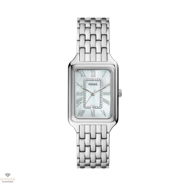 Az archívumunk igazi ikonja, a téglalap alakú Raquel karóra a jelenlegi pillanatnak megfelelően frissült. Karcsú és sokoldalú, gyöngyházszínű számlapja csillogó belső kerettel, hárommutatós dátumos óraművel és csiszolt és polírozott, rozsdamentes acélból készült 7 láncszemes karpereccel rendelkezik.