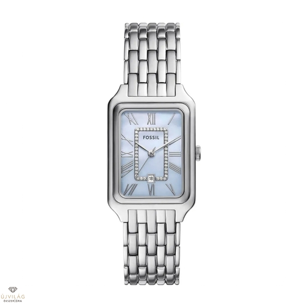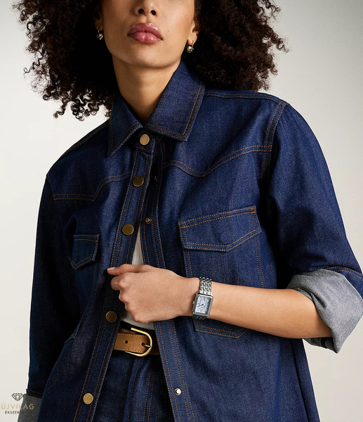 A Raquel óra egy igazi ikon újjászületése. Karcsú, téglalap alakú tokja és rozsdamentes acél szíjazata időtlen kifinomultságot sugároz. A csillogó kék gyöngyházszínű számlap világos, de sokoldalú, a hárommutatós dátumos szerkezet pedig könnyed funkcionalitást biztosít. A vintage ihletésű, mégis üdítően modern, ez egy olyan klasszikus, amelyet sűrűn fogsz használni.