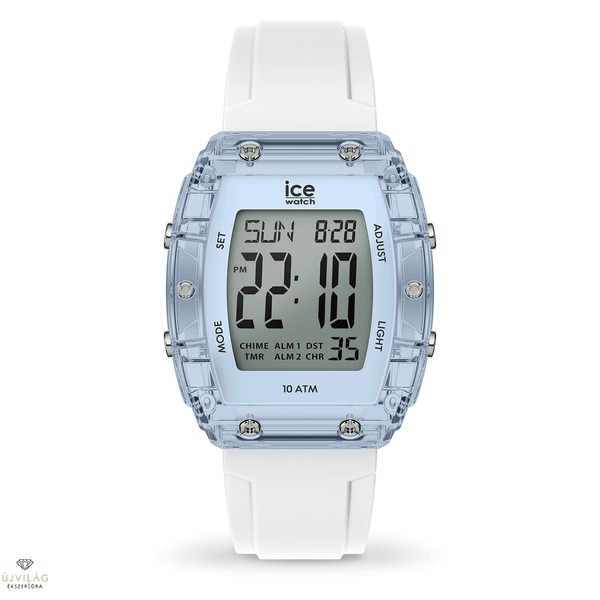 Ugorjon a jövőbe az ICE digit boliday - White Clear blue Silver segítségével. Retro-futurisztikus kialakítása fehér szilikonszíjat és átlátszó kék tokot kombinál a merész, modern megjelenés érdekében. A digitális kijelzőnek köszönhetően könnyedén nyomon követheti az időt és a dátumot, 10 ATM vízállósága pedig tökéletessé teszi minden vízi tevékenységhez. Egy eredeti modell, amely tökéletesen ötvözi a stílust és a technológiát az egyedi megjelenés érdekében.
