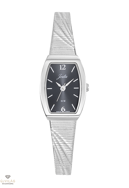 A francia JOALIA óramárka modelljei alkalmi viseletre ajánlott, hagyományos női ékszerórák. Franciaországban készült modell a számlapon is látható MADE IN FRANCE felirattal. A nemesacél tok szélessége 19,5 mm, hosszúsága 27 mm. A nemesacél óraszíj szélessége 10 mm, ívesen elkeskenyedik 7 mm szélességig, beakasztós-pattintós zárral kapcsolódik, mely a mozgatható zárrésszel méretre igazítható. Japán Shiojiri szerkezet garantálja a megbízható pontosságot. Az üvege keményített ásványi üveg, mely ellenáll az enyhe súrlódásoknak, azok nem hagynak rajta nyomot. Az óra szigetelése cseppálló, mely a kézmosáskor, esőben esetlegesen ráfröccsenő cseppektől véd, de vízbe nem vihető!