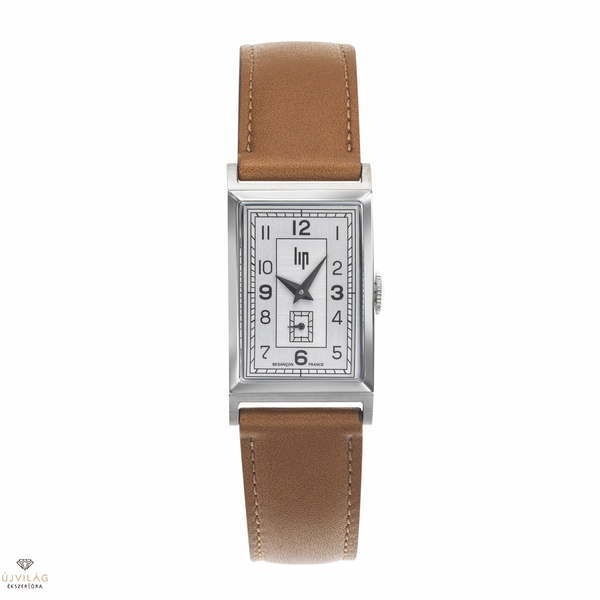 A LIP kollekció tiszta vonalakat, időtlen eleganciát és egyedülálló francia óragyártási hagyományokat garantál. A CHURCHILL angol miniszterelnök előtt tisztelgő T18 óracsalád óráit svájci Ronda 1064 quartz óraszerkezet működteti: különálló másodpercmutatóval a 6-os index felett. A szögletes óratok 21,2x38,5 mm méretű nemesacél, a világosbarna bőrszíj szélessége 18 mm, zárszerkezete hagyományos tüskezár. Az üvege minerálkristály, mely ellenáll az enyhe súrlódásoknak, azok nem hagynak rajta nyomot. Az óra szigetelése cseppálló, mely véd az esetlegesen ráfröccsenő vízcseppektől, de vízbe nem vihető, úszásra, zuhanyzásra nem alkalmas!