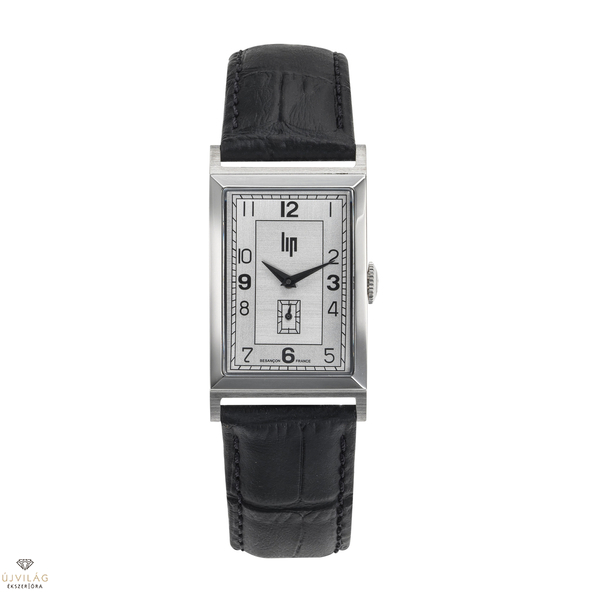A LIP kollekció tiszta vonalakat, időtlen eleganciát és egyedülálló francia óragyártási hagyományokat garantál. A CHURCHILL angol miniszterelnök előtt tisztelgő T24 óracsalád óráit Miyota 1L40 quartz óraszerkezet működteti, a 6-os index felett különálló másodpercmutatóval. A szögletes óratok 23,5x41,5 mm méretű nemesacél, a fekete bőrszíj szélessége 20 mm, zárszerkezete hagyományos tüskezár. Az üvege minerálkristály, mely ellenáll az enyhe súrlódásoknak, azok nem hagynak rajta nyomot. Az óra szigetelése cseppálló, mely véd az esetlegesen ráfröccsenő vízcseppektől, de vízbe nem vihető, úszásra, zuhanyzásra nem alkalmas!