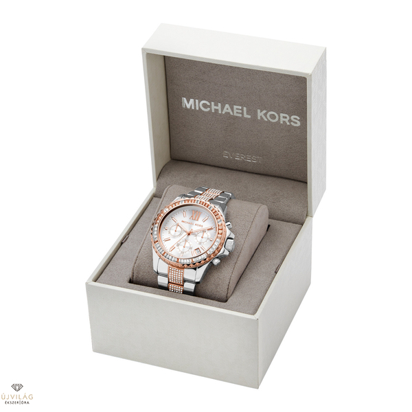 Az ikonikus Everest karóra visszatér, modern, túlméretezett baguette kövekkel frissítve. A kéttónusú rozsdamentes acél tok megígéri, hogy ellenáll a végtelen kopásnak, és feltárja Michael aláírását, míg a kiegészítő tárcsa kronográf részleteket és dátumablakot tartalmaz a további funkcionalitás érdekében. Szeretjük, hogy a pavé ékezetek finoman tükrözik a fényt.