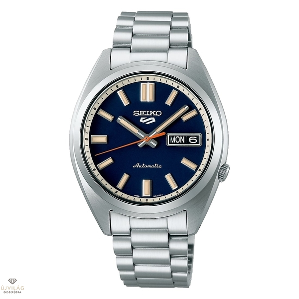 A régóta ismert Seiko 5 Sports SNXS sorozatunk evolúciójának folytatásaként ez az új óra az eredetiek tervezési elveit követi. A "klasszikus sport" témájához illeszkedve épült ez az óra a 70-es évekbeli Seiko 5 Sports modellek lényegét veszi át, és integrálja azokat a modern specifikációkkal. A félgömb alakú üveg alatt a számlapon a sötétben világító Lumibrite mutatói és indexei finoman barázdált vonalakkal gyémántcsiszoltak, egy "öblítőkék" sötét számlapon. A mutatók nem háromszög alakúak és szélesebbek, hogy fokozzák a vintage retro megjelenést, míg a narancssárga másodpercmutatót a klasszikus 70-es évekbeli design ihlette. A fém számlapgyűrűvel ellátott karperec feltűnő tükör- és hajszálpontos kidolgozással rendelkezik. Ezt a darabot egy házon belüli 4R36 automata szerkezet hajtja, amely napi +45 / -35 másodperces pontossággal és 40 órás járástartalékkal rendelkezik. A Seiko 5 Sports több mint ötven éve ismert a megbízhatóságról, tartósságról, teljesítményről és értékről. Az ''5'' minden Seiko 5 eredeti öt fő jellemzőjét jelképezi, amelyek ma is jelen vannak: Automata szerkezet, Nappali dátum kijelző, Vízállóság, Süllyesztett korona és Tartós tok és szíj.