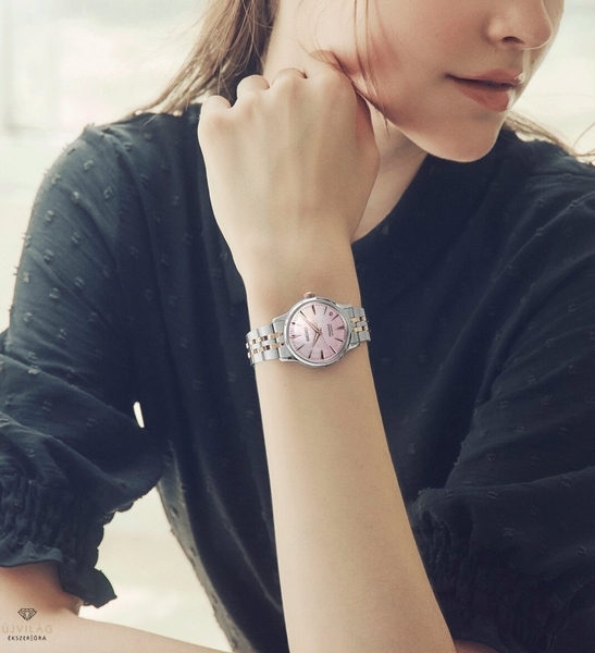 A Seiko Presage Cocktail Time SRPM06J1 “Sakura Aviation” limitált kiadás a japán tavasz hangulatát idézi meg a Cocktail Time kollekció elegáns világában. A modell inspirációját a Sakura Aviation koktél adta, amely a cseresznyefa virágzásának finom, fehérből halvány rózsaszínbe forduló árnyalatait hozza el a számlapon. A gyöngyház hatás és a lágy színátmenet különleges mélységet ad az órának, miközben a rózsaarany részletek kifinomult, nőies karaktert kölcsönöznek neki. A 34 mm-es tokméret és a karcsú kialakítás harmonikusan illeszkedik a csuklóra, így a modell tökéletes választás mindennapi eleganciához vagy akár egy különlegesebb alkalomhoz is. A Hardlex üveg alatt a 4R35-ös automata szerkezet dolgozik, 41 órás járástartalékkal, amely megbízható mechanikus működést biztosít. A világszerte mindössze 9000 darabos limitált kiadás egyedi díszdobozban érkezik.
