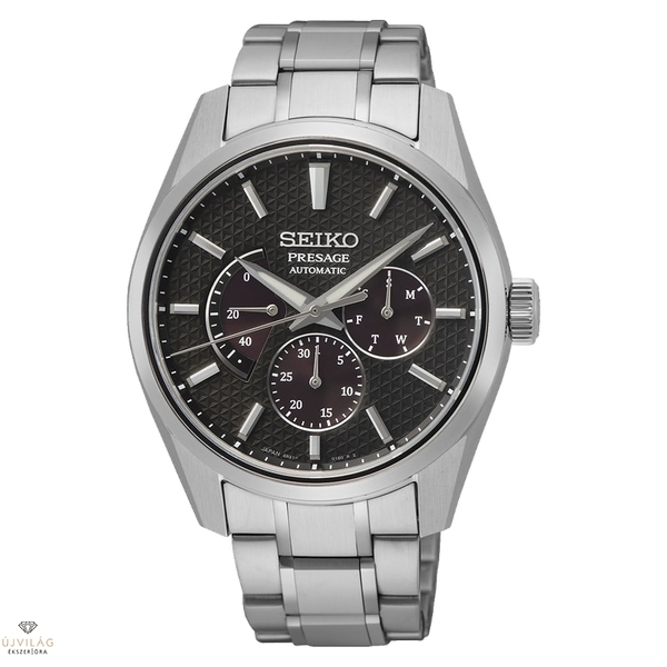 Az SPB307J1 a már megszokott asanoha mintázatot kapta, ez a teljes Presage Sharp Edged Series sorozat sajátja. A modell a Kurotobi, a japán papírsárkány, a kite" fekete színében érkezik. Ami új ebben az órában, az a kaliber, amely eddig nem szerepelt a Sharp Edged Series modellek kínálatában. A 6R21 mechanikus automata szerkezet három segédszámlapján egyszerre jeleníti meg a járástartalékot, a hét napját és a dátumot is - stílusos, informatív és egyedi megoldás."