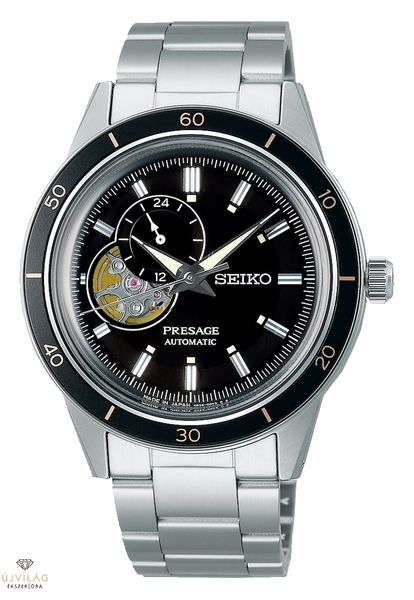 Új Style60's kollekció. A XXIII. nyári olimpiai játékokat ismét Tokióban rendezik, így aktuális volt a legendás Crown Chronograph modell előtti tiszteletadás jeleként egy kicsit újragondolni azt. A hatvanas évek stílusában készülő újdonságoknak, a Seiko Presage Style 60's modelleknek így a legmegfelelőbb alapot adta a Presage, a stílus pedig egy kicsit retro és mégis teljesen mai. Az óra áttört, úgynevezett open heart" számlapot kapott, mely betekintést enged a mechanikus óraszerkezet működésének csodájába. A szerkezet 4R39 kaliber , mely a három mutató mellett dátum kijelzést nem kapott, ellenben van egy 24 órás segédszámlap 11 óránál, így mindig biztosak lehetünk benne, melyik napszakban járunk. A Seiko egy évszázadon keresztül fejlesztette és finomította a mechanikus órakészítés technológiáit. Ma mindez a tapasztalat egyesül egy új, kizárólag mechanikus modelleket felvonultató kollekcióban, melyet a Presage névre kereszteltek. A töretlen japán sikert követően a kollekció immáron a nemzetközi hírnév irányába tör, központi helyet elfoglalva a Seiko mechanikus kollekciói között.