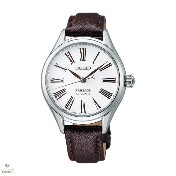 Az SPB233J1 modell zománc számlappal büszkélkedhet, a Presage kollekció női oldalát mutatja be formájával, finomságával, szépségével és méreteivel is. A koronába ültetett gyémánt ragyogása kiemelkedik a zománc számlap és a tok lágy fényéből, erősíti és kiegészíti azt - mindamellett látványos eleme az órának. Aprólékos gondossággal készült lágy vonalak a tokon, karcsú római számok a számlapon és a domború, zafír kristály óraüveg teszi igényessé és finommá az órákat. Az SPB233J1 egy igazán nőies modell barna bőrszíjjal és a cseresznyevirág színével a számlapon. A modell 70 órás járástartalékkal bíró 6R31 kalibert kapta, hiszen a Presage modellek a mechanikus órakészítés hagyományait követik, mindegyik 5 bar vízállóságú és domború zafír kristály óraüveggel biztosítja a legszebb látványát a zománc számlapoknak - az igényes órakedvelő hölgyek tiszteletére.