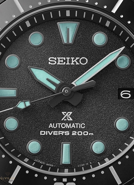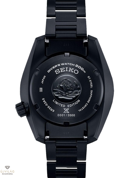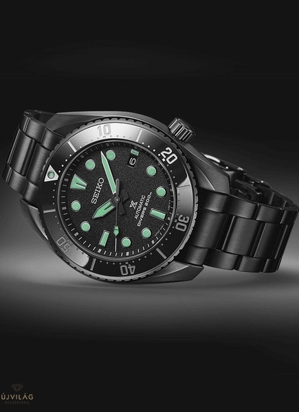 3500 darabos limitált kiadású SPB433J1 Sumo Diver Prospex Black Series Sumo Diver Nightvision modell egyedi díszdobozzal. A különlegesség klasszikus Prospex Sumo stílusa erőteljes, robosztus megjelenéssel ruházza fel az órát. Kerámia lünetta. Az órában a mechanikus automata 6R35 kaliber dolgozik, amely -15/+25 másodperc napi pontosság mellett 70 órás járástartalékot nyújt.