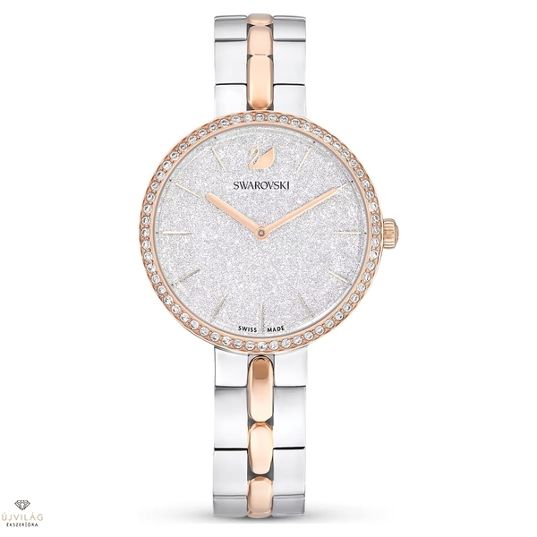 Legyen sikkes a svájci készítésű Cosmopolitan karórával. Átlátszó pavé kristályokkal díszített csillogó óra elegáns rozéarany árnyalatú kivitelezéssel, rozsdamentes acél óraházban, állítható méretű szíjjal. Viselje nappal vagy este, hogy egy kis visszafogott csillogást vigyen megjelenésébe. Tok mérete: 32 mm. Óraszíj hossza: 16.5 cm.