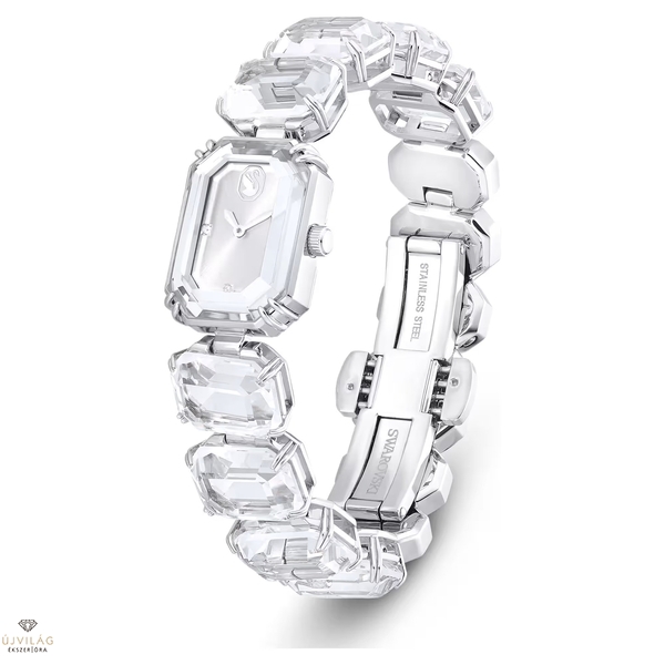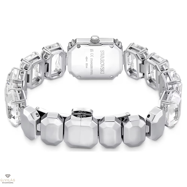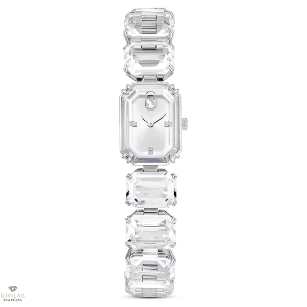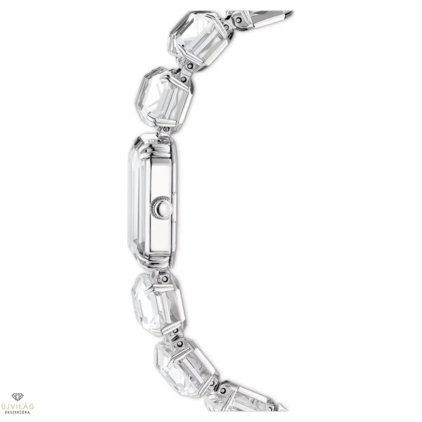 A Millenia család ihlette, figyelemfelkeltő karkötős óra elegánssá varázsolja hétköznapi megjelenését. A nyolcszögletes metszésű, átlátszó kristályok sorából mesterien megmunkált óra ezüstös árnyalatú számlappal, kristályos lünettával és rozsdamentes acél kivitellel rendelkezik. 50 méterig vízálló, és elegáns választás önmagában vagy más ékszerekkel rétegezve. Méretek: Óraház mérete: 23 x 17 mm. Óraház vastagsága: 8 mm. Óraszíj hossza (min. - max.): 12.5 - 19 cm. Óraszíj szélessége: 1.4 cm